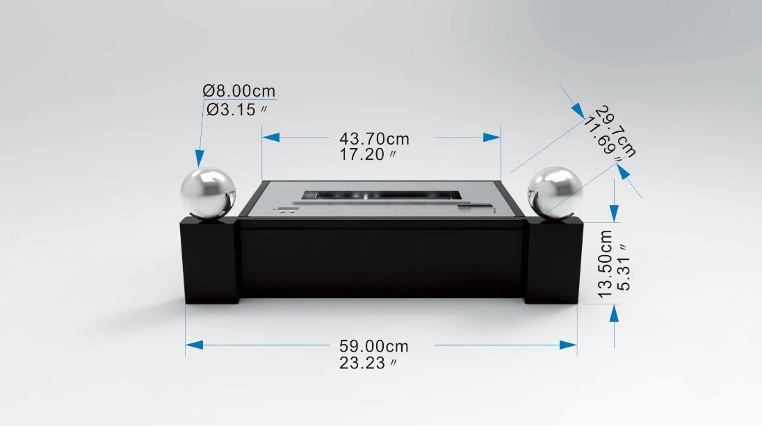 Bioethanol Kamineinsatz ADD M von AFIRE® – automatisch und kompakt, mit 59 cm Länge. Entwickelt für die Integration in offene oder traditionelle Kamine. Dieser Einbau-Brenner mit Fernbedienung bietet eine sichere kontaktlose Zündung und ist mit einer Abdeckplatte aus 3 mm gebürstetem Edelstahl ausgestattet. Eine elegante Lösung, um bestehende Kamine wieder zum Leben zu erwecken. Der Ethanol-Kamineinsatz ADD M wird mit zwei schwarzen und zwei goldenen Kugeln geliefert.