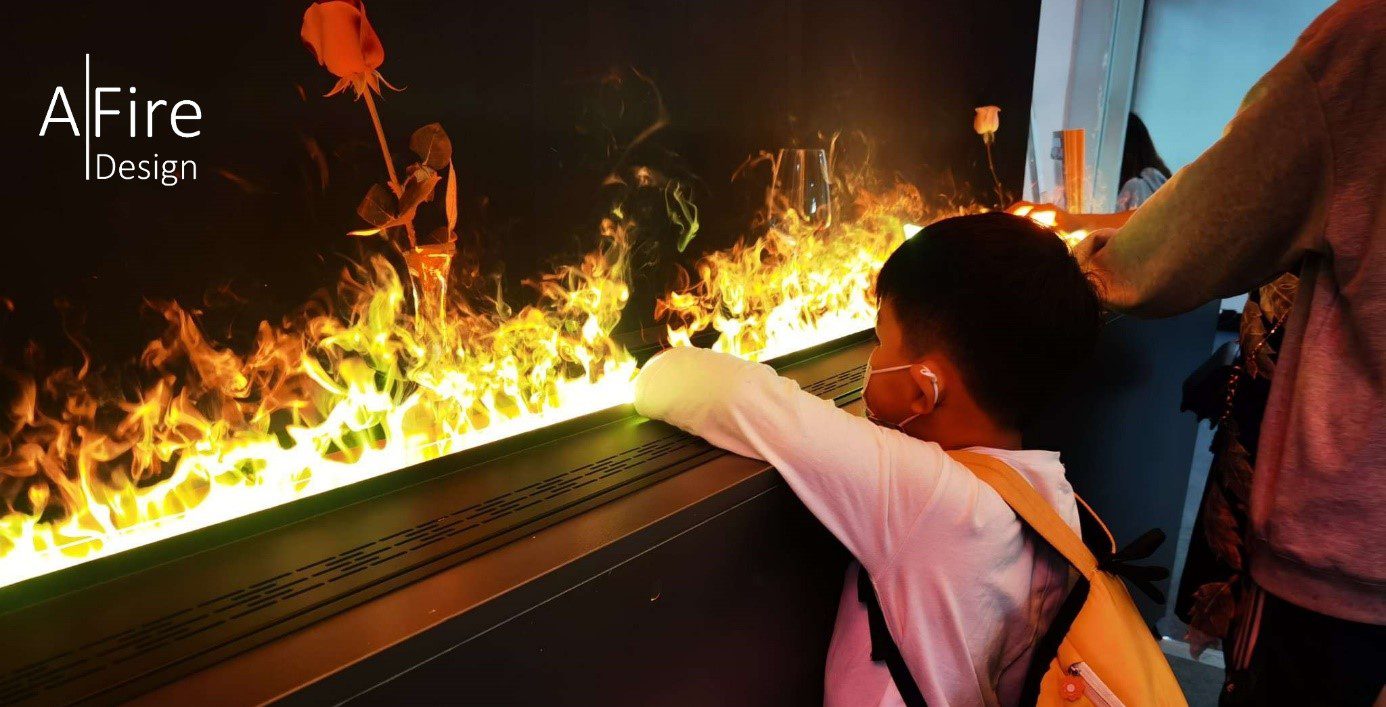 Aunque el fuego es fascinante, también puede ser peligroso. Con las chimeneas eléctricas de vapor de agua, las llamas son frías y, por lo tanto, 100 % seguras. Además, las unidades AFIRE están equipadas con lámparas UVC para desinfectar el vapor (aire y agua, patente de AFIRE) y evitar que los gérmenes, virus y bacterias se propaguen al aire circundante.