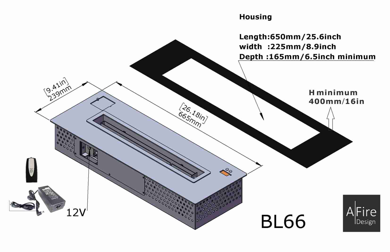 Ficha técnica del quemador de bioetanol automático BL66 – 66 cm