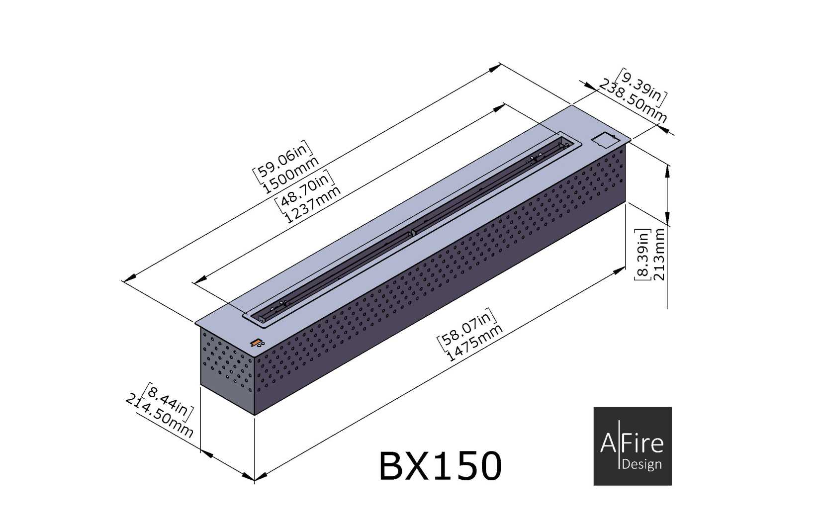 Scopri le specifiche e le caratteristiche dettagliate del bruciatore a etanolo automatico e telecomandato da incasso BX150 AFIRE.