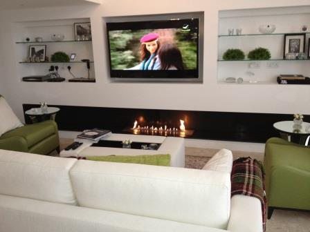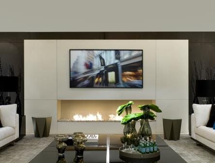 The second has to do with the new design possibilities made available to interior designers and decorators. There is no longer the question of a massive TV with a vented fireplace that take up all of the available space. The fireplace and the flat screen easily integrate into any style of decoration and design.